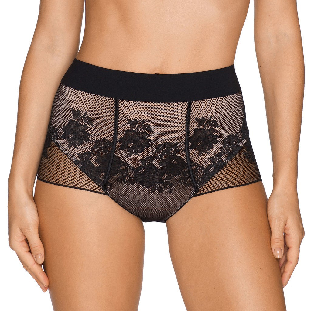 PrimaDonna Twist Cabaret in Black - Shapewear BriefsFigure-fixing and oh so sexy: briefs with high waist made from graphical all-over and an opaque fabric. The briefs streamline your tummy and waist to create a flowing silhouette. Your buttocks are completely covered with lace and a nude fabric.
